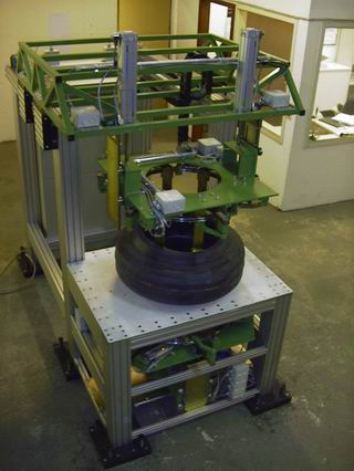 Vor der Vulkanisation muss die Reifeninnenschicht mit einem Lösemittel beschichtet werden. Der Auftrag muss kantenscharf für wechselnde Größen erfolgen.